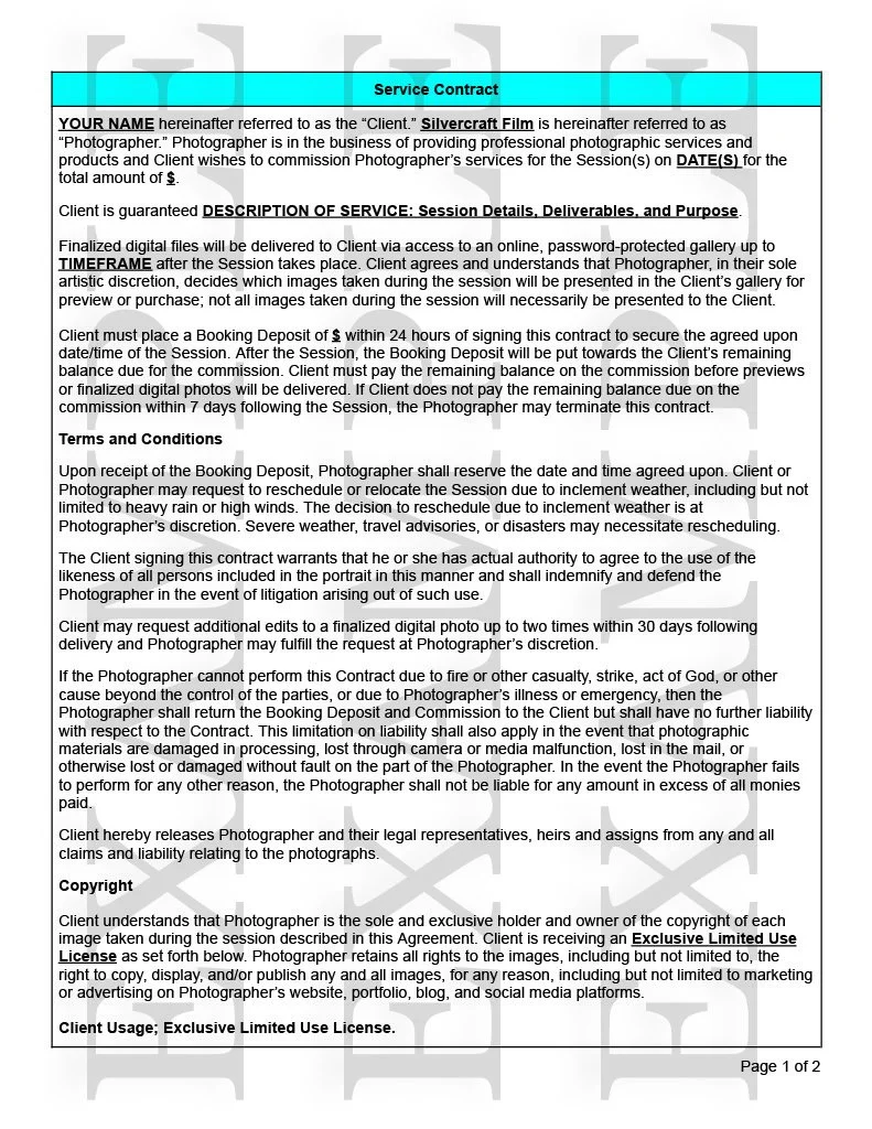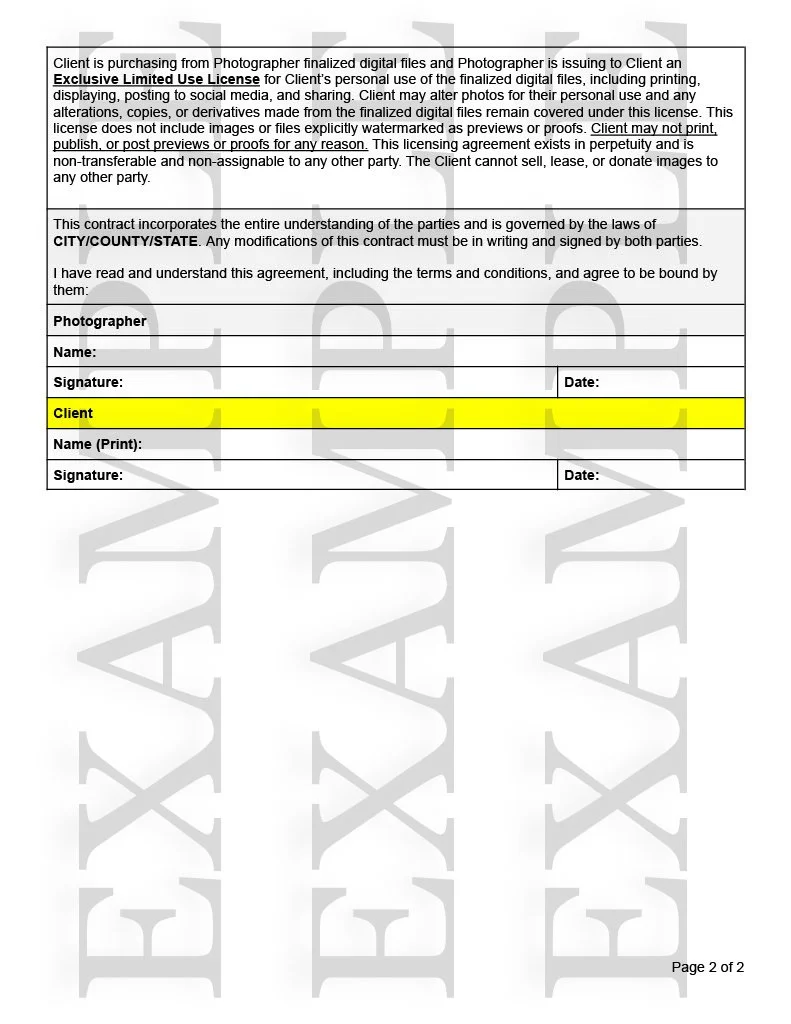 Sample Portrait Photography Contract
